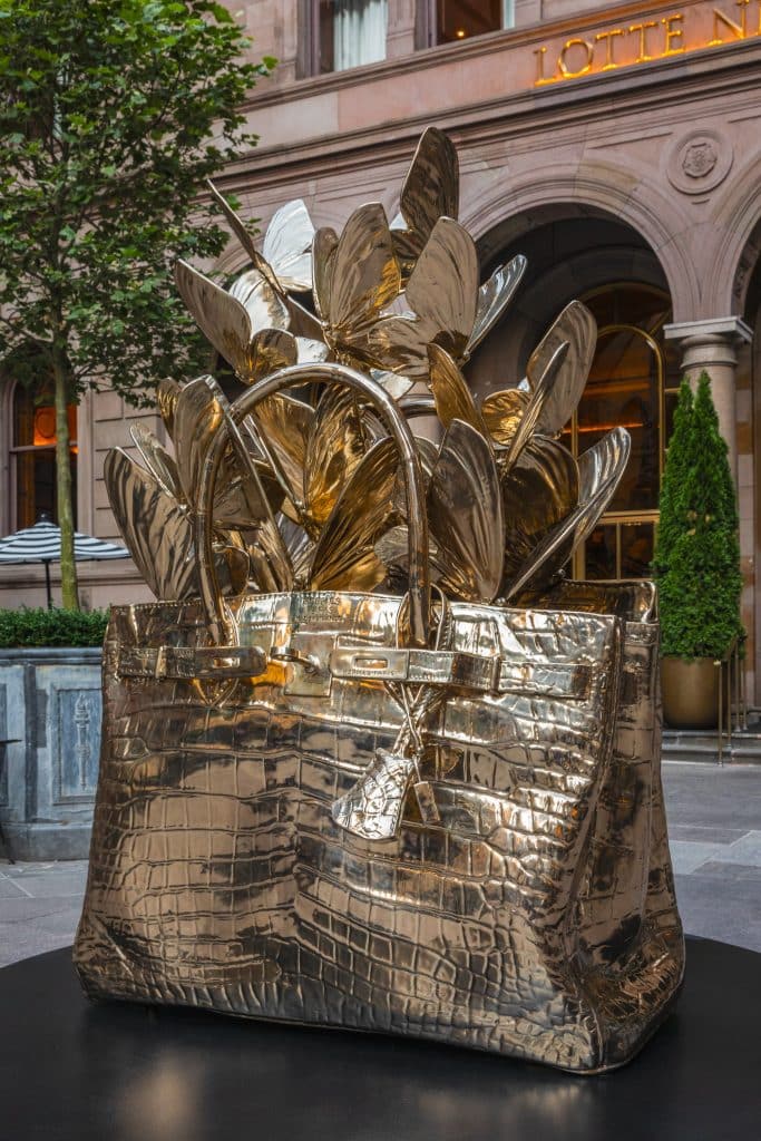 The latest art installation using the bronze material , “Hermes Bronze Monumental, 2023,” now gracing the prestigious Lotte New York Palace, valued at $400,000, will captivate audiences over the next three months, along with additional works featured throughout the property.