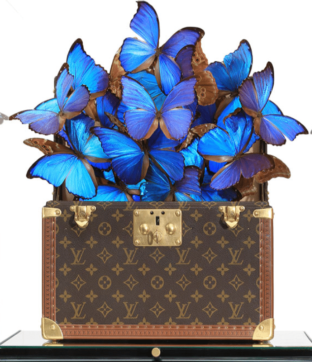 Roman Feral’s artistry is unique with a blend of traditional craftsmanship and innovative techniques. Like a modern-day alchemist, he captures the refined essence of iconic luxury items using one of nature’s most delicate creations: butterflies. By arranging these butterflies in a state of perpetual flight, Feral transforms fleeting moments into eternal beauty, offering viewers an illusion of endless journey and elegance.